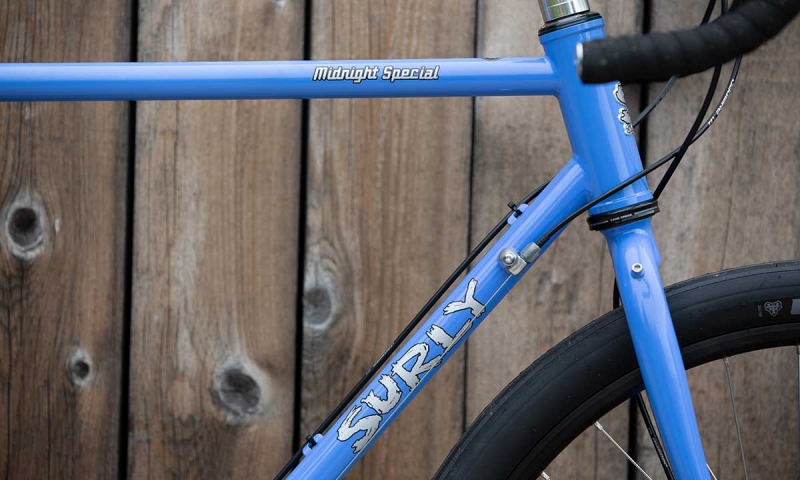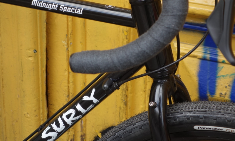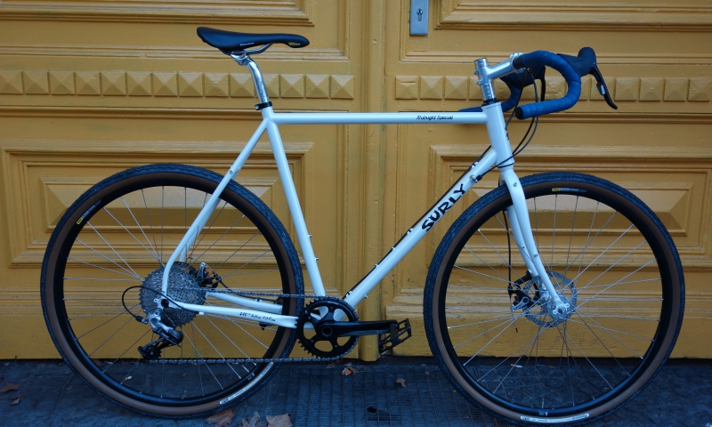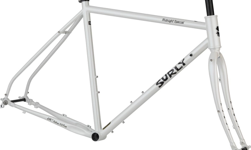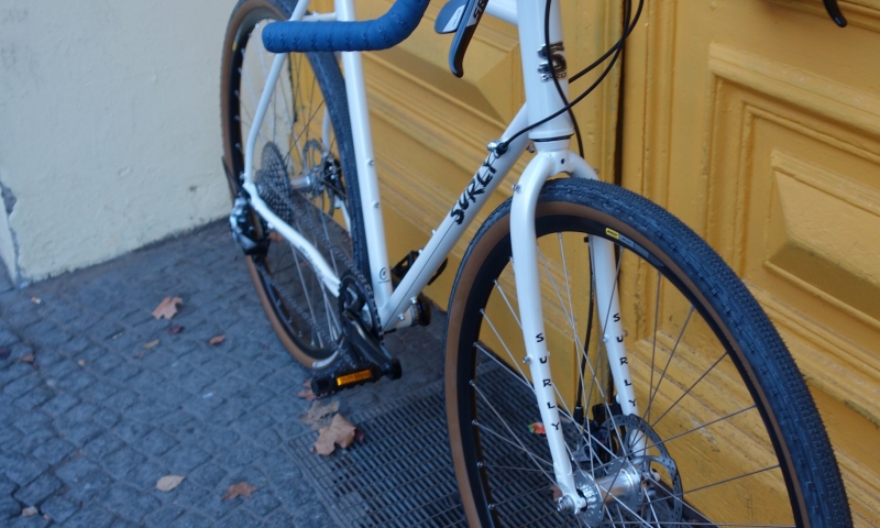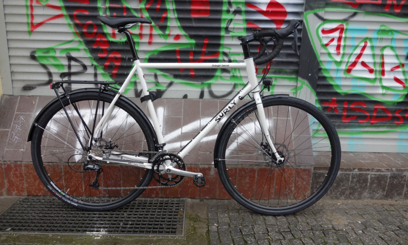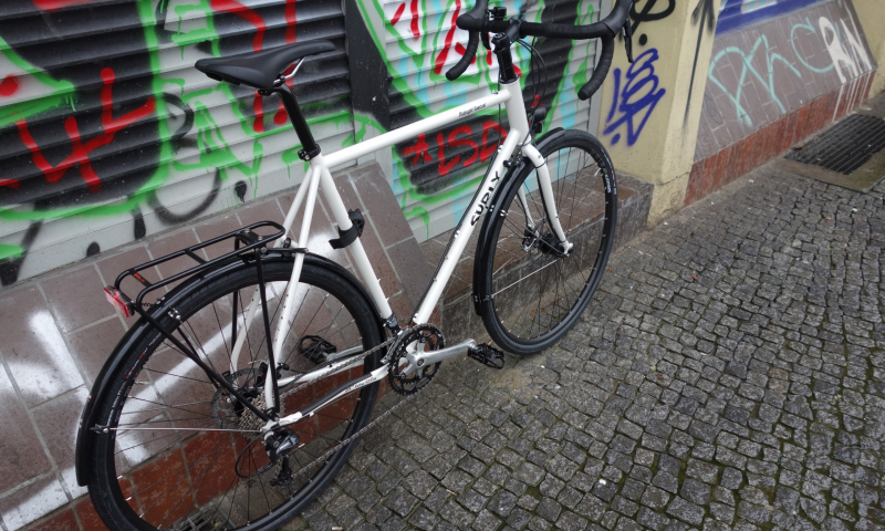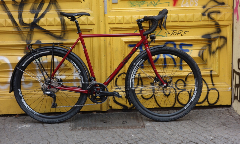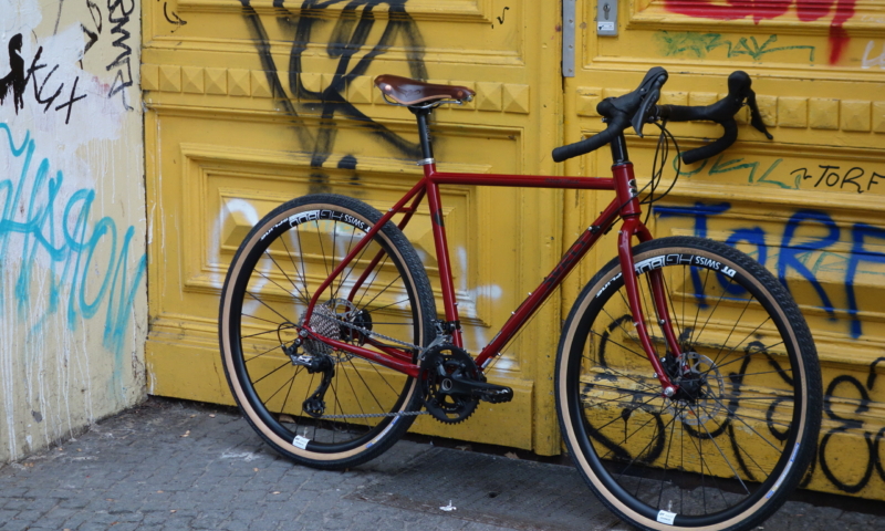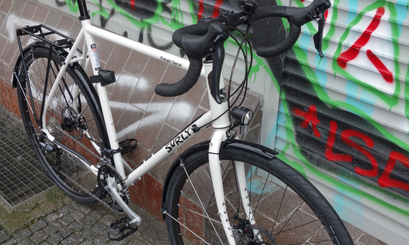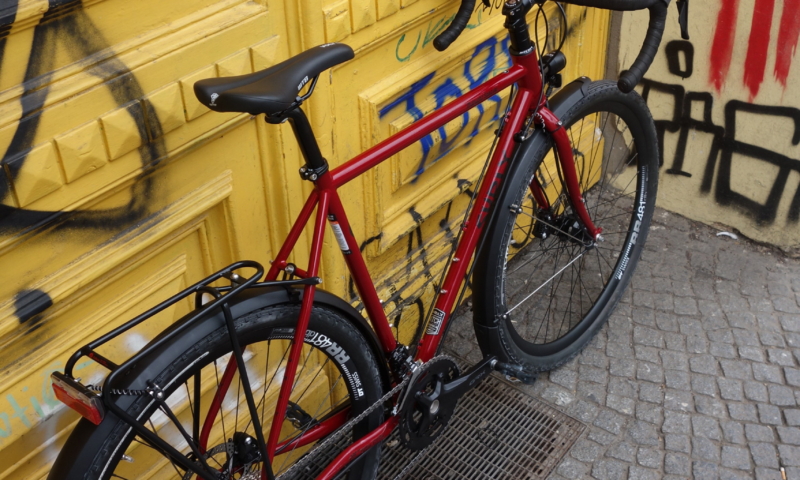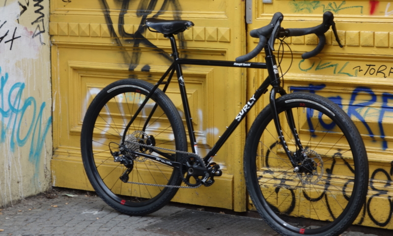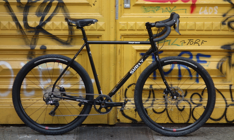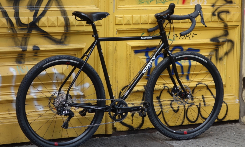 A road bike for cobblestones, pothole tracks and bumpy dirt roads, with a very sturdy frame, but agile and nimble to ride. If you need a fast bike for the way to work, the Midnight Special by Surly is also a good choice. 12mm thru axles and flatmount brakes are modern road bike standard. Tire widths of up to 57 mm (with 27.5″ wheels) are usually more familiar from mountain bikes. Surly has succeeded in creating this symbiosis. The frame has options for mounting racks and mudguards, so it works as a fast touring bike. The 44mm head tube allows the use of modern carbon forks if you want to save weight. We build this frame with the equipment of your choice.