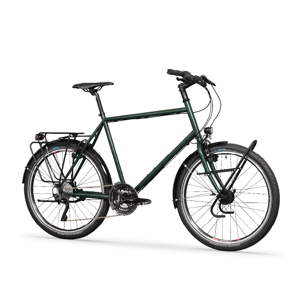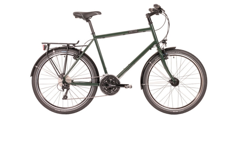The equipment variants range from Shimano drivetrains to Rohloff 14-gear hub, all in city or touring bike outfit. Various attachments such as lights and brakes and racks can be configured individually.