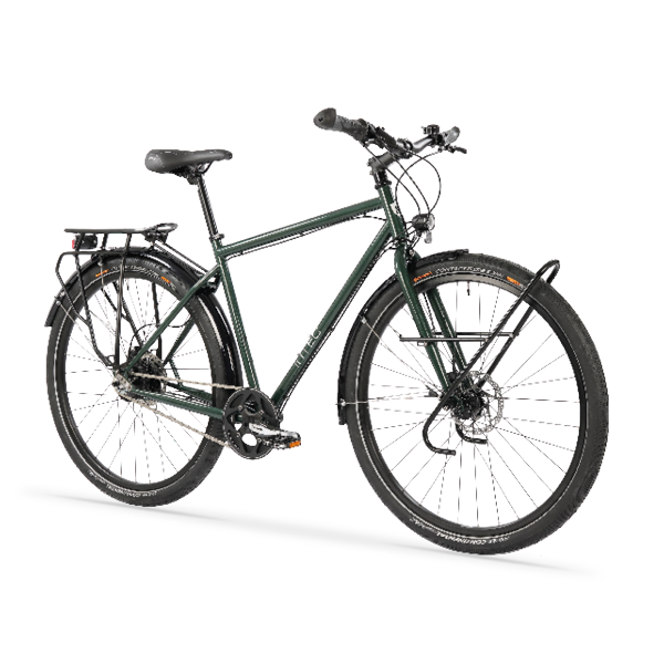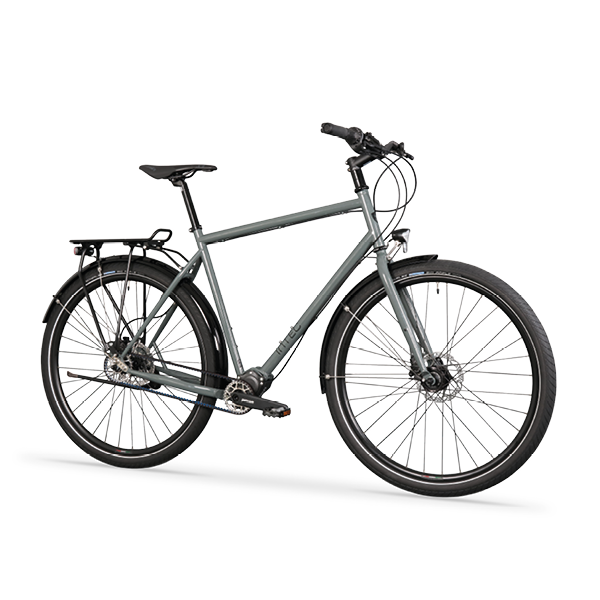 Designed as 29″ wheel touring- or city bike, but also feels good in unpaved roads. It has no suspension fork geometry, but the wide tires in combination with large wheels allow comfortable driving. The equipment offered goes via Shimano drivetrains up to the Rohloff 14-speed gear hub, the frame is designed for disc brake with 160 mm rotor and has adjustable dropouts.