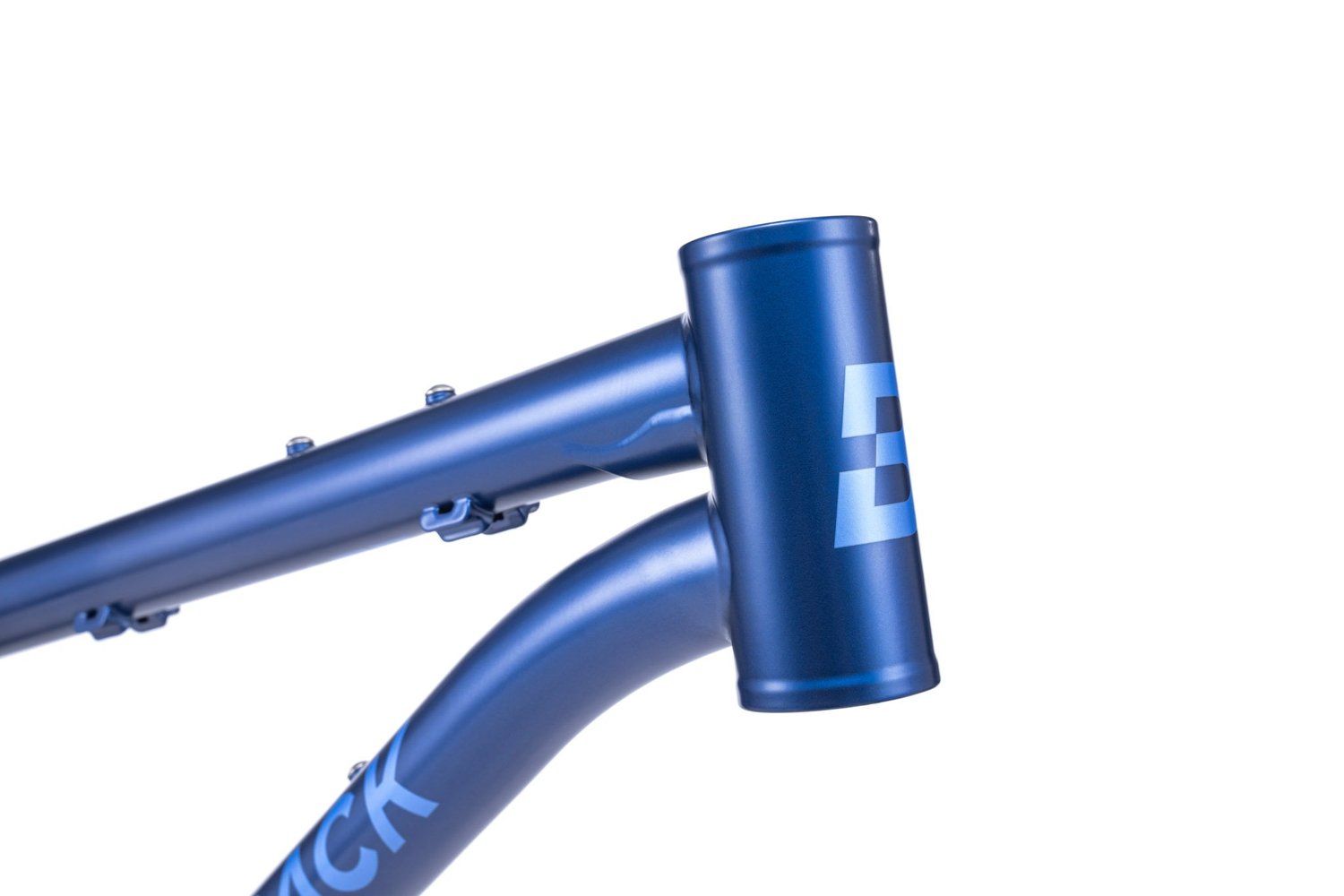 Bombtrack baut mit dem Beyond+ einen Rahmen für hohe Belastungen im Betrieb abseits von befestigten Straßen. Ein explizites Reiserad also für matschige und holprige Strecken. Diesen Rahmen kannst du mit sehr breiten Reifen fahren. Trotzdem ist noch genug Platz für Schutzbleche und Gepäckträger aller Art. Der Rahmen ist am Hinterbau für Naben mit Einbaubreite 12x148mm ausgelegt. Eine passende Starrgabel wird von Bombtrack unter dem Label Seido angeboten, alternativ kannst du aber auch eine Federgabel einbauen. Der Rahmen ist für die Verwendung von Scheibenbremsen mit der maximalen Rotorgröße von 180mm ausgelegt. Eine Öffnung am Sattelrohr erlaubt den Einbau einer versenkbaren Sattelstütze (Dropper Post). Viele Ösen bieten die Möglichkeit unterschiedlichste Gepäckträger zu montieren.
