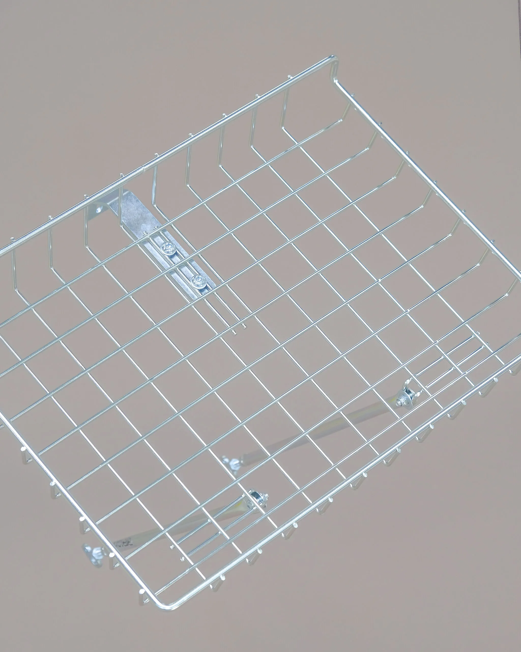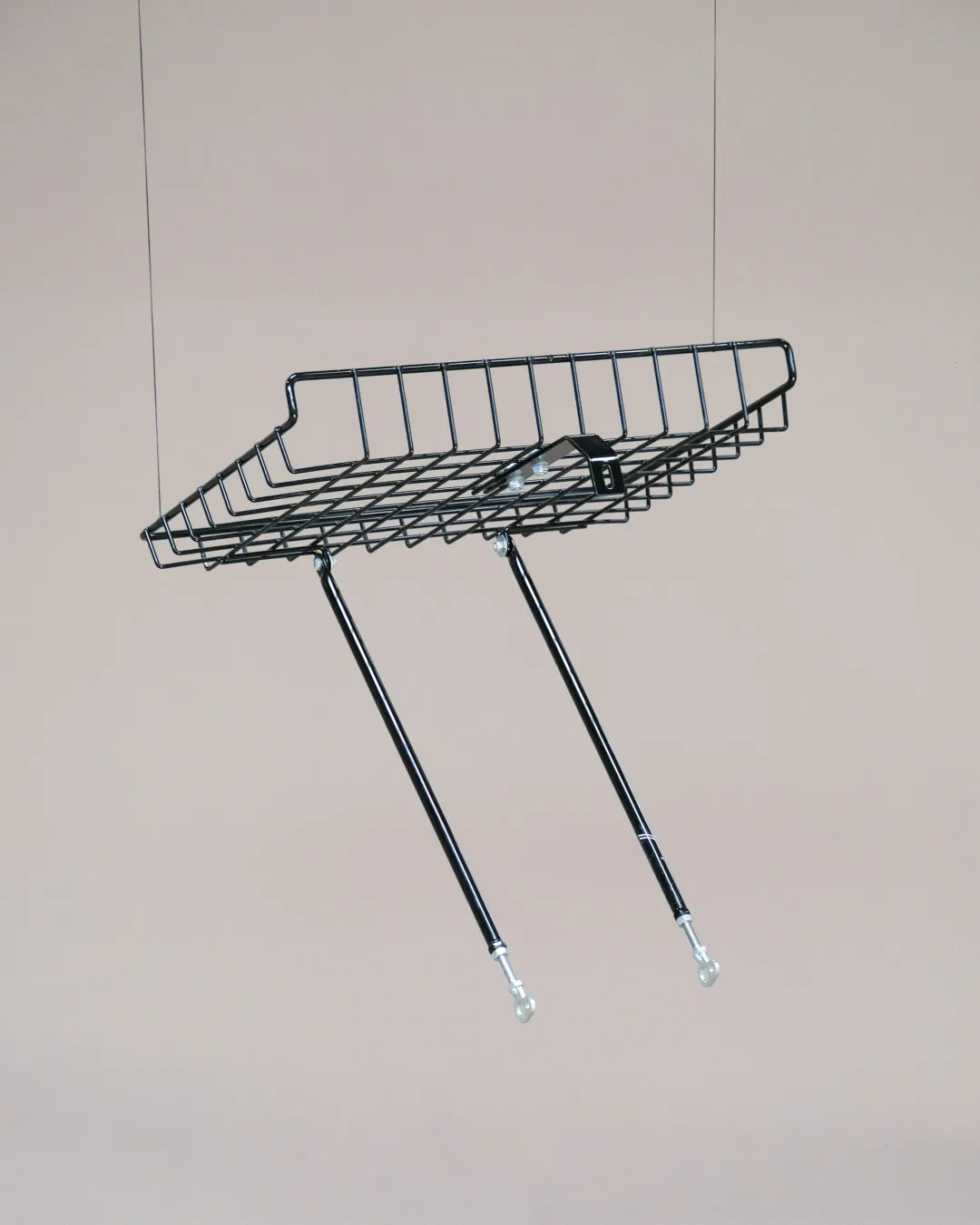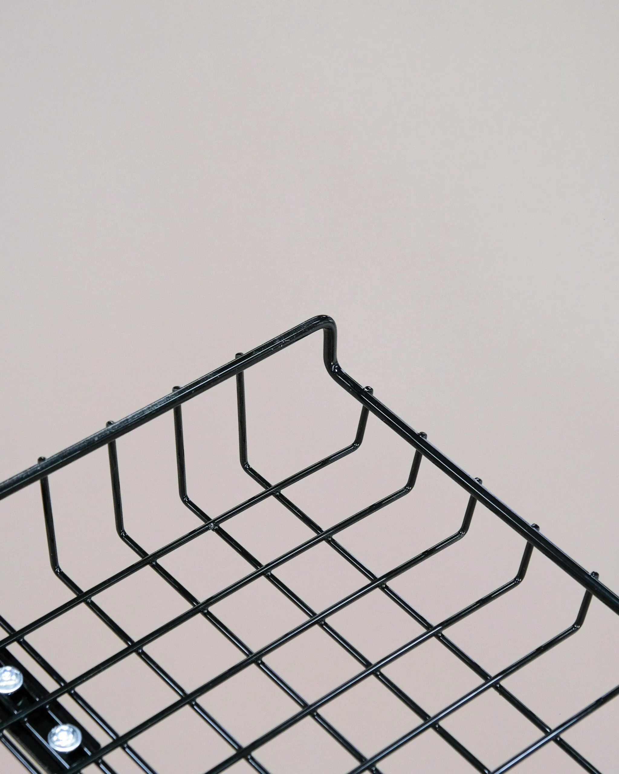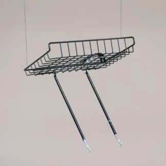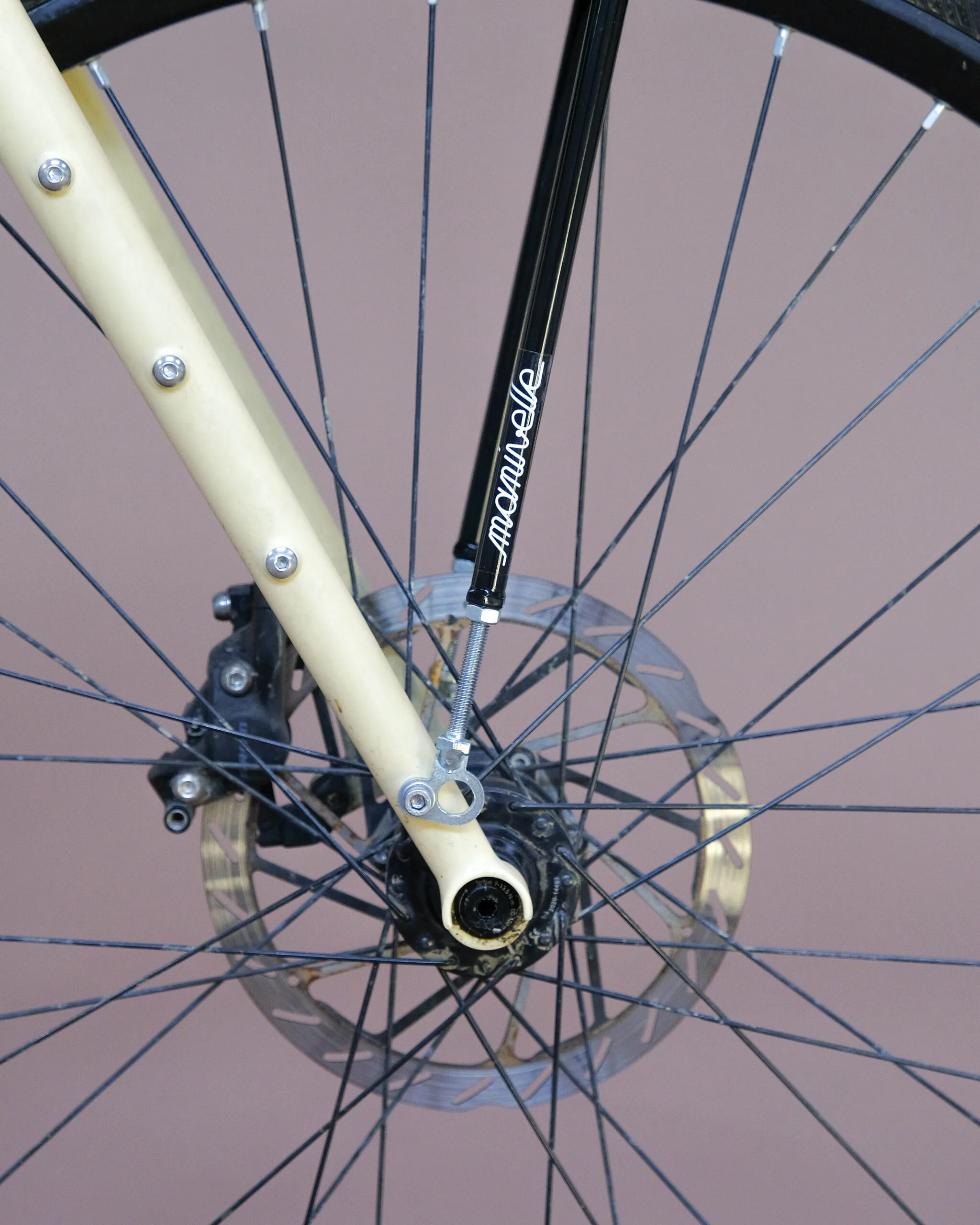 Cycles Manivelle aus Straßburg lässt diesen Gepäckträger in Frankreich von einem Hersteller für Einkaufswagen produzieren. Das Konstruktionsprinzip entstammt einem Einkaufswagen, – mit entsprechender Stabilität. Die Befestigung erfolgt an der Bohrung der Gabelkrone, zwei Streben zum Ausfallende des Vorderrads stützen den Korb zusätzlich ab. Maximal Belastung ist 10 kg!